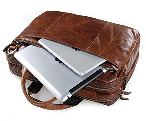 -. Binding : Personal Computers -. Brand : Berchirly -. Department : unisex -. Feature : 100% Guarantee genuine - Real Crazy Horse leather. it's very well-made, nice stitching, wonderful design. The fabric lining is thick enough and doesn't feel as though it will tear or stretch easily. / Size approximately(without handle) :15"L x 3.5" W x 11.5"H inches, the height of handle : approx 4.5inch / The two main sections allowed me one for my laptop and one for my folders ,books or clipboards. The ample number of smaller pockets and sleeves allowed for dedicated spaces for USB devices, chargers, pens, pencils, cables and the rest of all the stuff we're burdened carrying around. / Double handles drop be able to used comfortably, including an extra adjustable long strap, this purse may do four uses: Briefcase, laptop bag, handbag,messenger bag / Bronze tone hardware .Zipper top closure .Inside is nicely lined with durable fabric, has a wall zippered pocket, a file pocket,and two additional pockets (fits for wallet and mobile telephone pocket) and Laptop packet on the opposite wall from the middle compartment .Fit for 15" laptops -. ProductGroup : PC Accessory -. ProductTypeName : CARRYING_CASE_OR_BAG -. Title : Leather Messenger Bag for work, Berchirly Leather Laptop Briefcase Computer MessengerBag Shoulder HandBag
