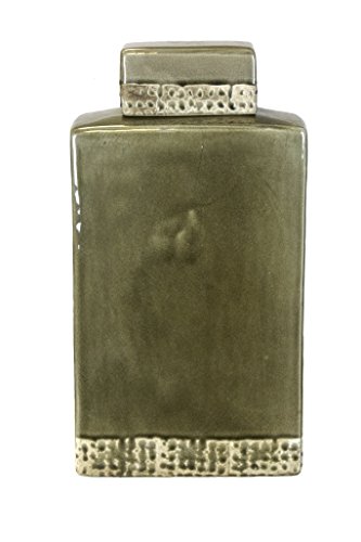 - Decorative ceramic banded covered jar, Green, 11.25" x 7.25" x 19.5"