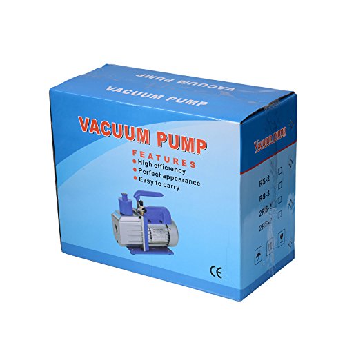 Pick up a brand new vacuum pump from HomCom for a variety of applications and industrial needs. This machine works by removing gas from a sealed volume in order to leave behind a partial vacuum. Use it to remove moisture from refrigeration and air conditioning systems. It comes with a bottle of vacuum oil so that you can get started using it right away. FEATURES: - Efficiently remove moisture and air from air conditioning systems, - Designed to prevent oil from flowing back and polluting the container and tubes, - Lightweight yet heavy duty aluminum built for ease and durability, - Oil viewing window to monitor levels and quality, - Large filter for high efficiency, - Low noise and long service life, - Certification: UL, - Comes with a bottle of oil. SPECIFICATIONS: - Single Stage, - Dimensions: 10.6"L x 4.5"W x 8.5"H, - Material: Aluminum alloy cover and copper coil, - Color: Blue, - Voltage /Frequency: 110V/60HZ, - Flow Rate: 4CFM (114L/MIN), - Ultimate Vacuum: 5 Pa (0.05mbar)/150Microns, - Rotating Speed: 1720RPM, - Power: 1/3HP, - Inlet Port: 1/4" Flare, - Oil Capacity: 225ml, - Cord Length: 65"L, - Plug: American plug in accordance with American standard, - Net Weight: 17lbs, - Gross Weight: 20lbs, - Custom Label: C20-001.Feature