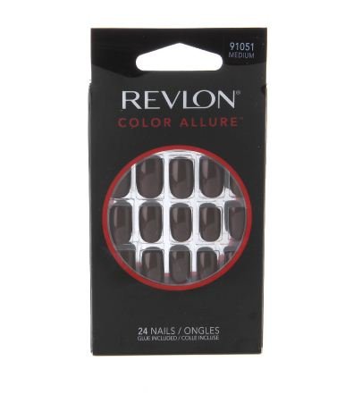 Studio : Revlon By ForHoME Publisher : Revlon By ForHoME Binding : Misc. Product Description aptivating Color at Your Fingertips Medium Get the look of glamour. It's effortless. Revlon® Color AllureTM Glue-On Nails offers a splash of color with intense shine. Beautiful nails deserve divine color! Includes: 24 Nails 1 Maxi-Bond® Glue (Net Wt. 0.10 oz. (3 g)) 1 Bond Enhancer Buffer 1 Manicure Stick Packaged in Mexico; Nails - China Glue - Taiwan Buffer - China Manicure Stick - Mexico Preparation: Lightly buff natural nails and clean to remove any polish or oils. Locate the number on the underside of each nail and select a size that closely matches your own nail. 3 Easy Steps: To ensure proper application, make sure the number on the underside of each nail is located at the tip of your nail, otherwise placement will be upside down and not durable. Apply an even layer of glue over entire natural nail and back of artificial nail. Use enough glue to cover entire area and to prevent air bubbles from forming. Press nail firmly for 5 seconds. Use manicure stick to wipe off excess glue. To Remove: Soak in acetone polish remover until artificial nails dissolve. Do not break or peel off nails. To maintain healthy, strong nails, glue-on nails should be removed every 7-10 days and a new set applied. 0