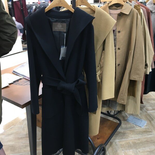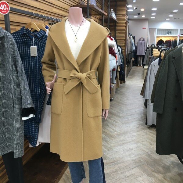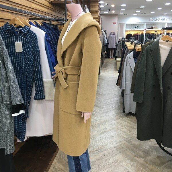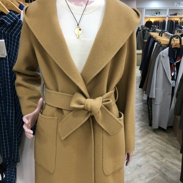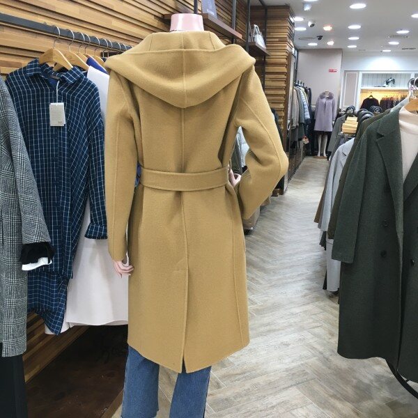 핸드메이드 모직 코트입니다 허리끈형식의 후드 코트입니다