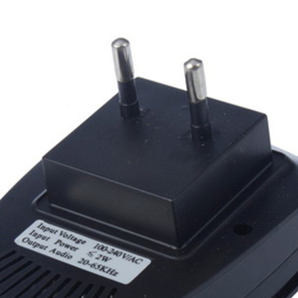 | Features: EU Plug Ultrasonic Electronic Pest Bug Insect Repeller Electro Magnetic Brand new and high quality. This machine will have great effect in 50-80 square meters in the room. This machine can lustrate house black beetle flea fly cricket ant wood ant etc vermin. The ultrasonic that sent out from this machine is far away from hearing range of human being. They will not do harm to human being and pets. Also will not have affect on house machine. This machine is safety and environment protected. Smell-less and flavorless. Teeny used energy. Specifications: Input voltage: 100-240V. Input frequency: 50-60Hz. Input Power: No more than 2W. Output Audio: 20-65KHz. Plug Type: EU PLUG Original box: No Color: White Black Item size: 97 x 59 x 57(max)mm Net weight: 40g Package weight: 49g Packing content: 1x Electronic Pest Repeller (EU Plug .The plug length is approx.20mm can not apply to the new EU regulation socket) |
