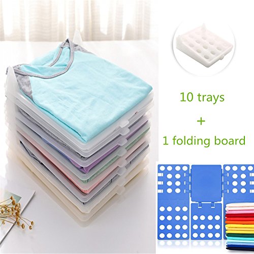 Closet Organizer, V-mix Clothes/T-Shirt Underwear Folder with 10-Piece Adjustable Separate Board (Transparent+ Shirt Folder)