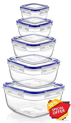 Lock&Fresh BPA Free Plastic Sealed Storage Container Set 5 pcs 10 oz. - 82 oz.
