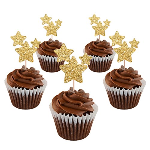 New Years Stars Cupcake Topper Color Gold 12 Pack Cupcake Topper Decoration Cake Graduation baby shower