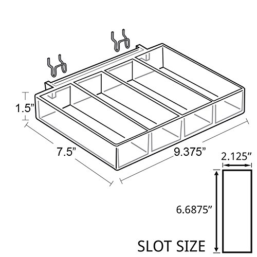 Azar Displays 225544-2pack Four-Compartment Tray for Pegboard/Slatwall (Pack of 2)