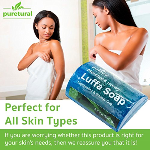 Luffa Soap Bar Exfoliant to clean dark spots Body Scrub Soap Whitening Dirt Remover with Natural Menthol and Honey Original Here's your ticket to an extraordinary shower. A loofah and soap in one. All of our handmade Luffa Exfoliating Soaps begin with our signature herbal-based formula and natural honey with moisturizing glycerin. The natural loofah sponge will exfoliate and scrub the skin clean, yet is gentle enough not to strip your skin of its natural oils. If you are struggling with dark spot, stretch mark, stubborn dirt, dirty neck and underarms, unattractive back, dark groin area or blemishes and you need something to get these DIRT & DARK SPOTS removed, then we have exactly what you need!