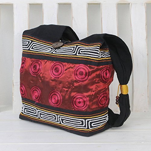 NOVICA Red and Black Cotton Silk Blend Shoulder Bag, Crimson Wine'