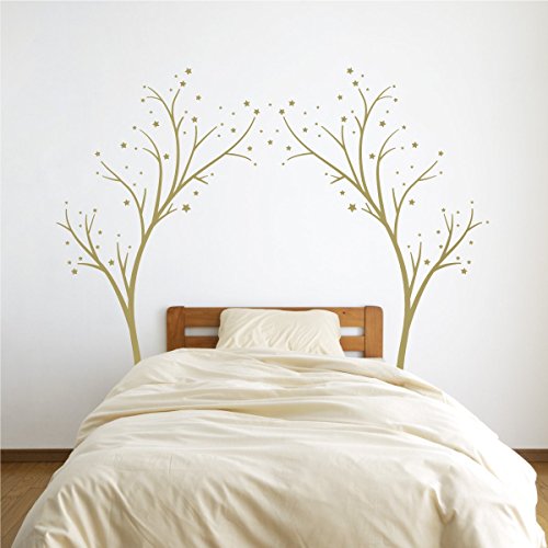 Large Star Tree Vinyl Decal - Decor Wall Sticker for Baby Nursery or Kids Room Home Design Transfer (Gold, 60x74 inches)