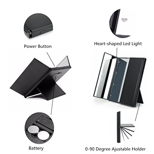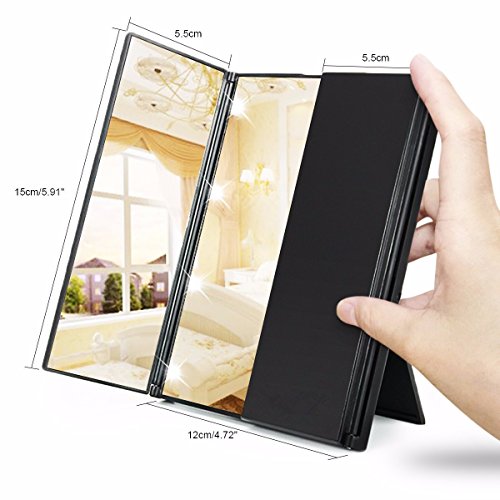 Cosmetic Mirror,Charminer Tri-Fold Lighted Led Mirror /Desktop Mirror / Vanity Mirror / Lighted Makeup Mirror / Pocket Mirror / Compact Mirror/3 Way Mirror With LED