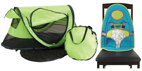 -. Binding : Baby Product -. Brand : KidCo -. Color : Kiwi -. Feature : Comes fully assembled with sleeping pad attached to outside bottom of PeaPod, with Open Dimensions: 52.5"L x 34"W x 25"H / Adjustable sun screens; Inner mesh zipper panel; Anchoring straps / Perfect for short visits or long trips / The Baby Sitter converts any chair into a high chair / Adjustable shoulder straps grow with baby -. Label : KidCo -. Manufacturer : KidCo -. ProductGroup : Baby Product -. ProductTypeName : BABY_PRODUCT -. Publisher : KidCo -. Studio : KidCo -. Title : Kidco PeaPod Plus Travel Bed with Baby Sitter, Kiwi