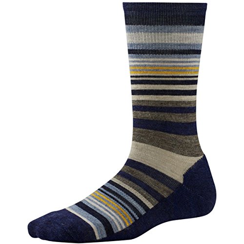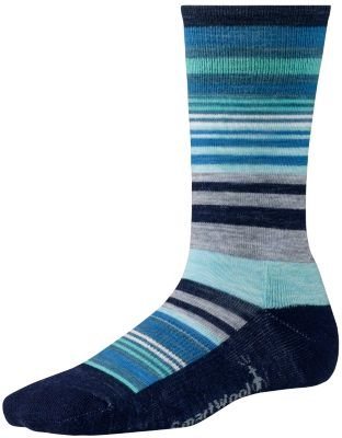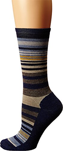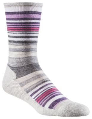 Wool blend sock with stripe detail. Crew style socks with cushioned bottom. WOWâ"¢ Technology features high density impact zones for longer lasting comfort and wool benefits. Supportive arch brace for added comfort. 76% merino wool, 23% nylon, 1% elastane. Machine wash cold and tumble dry low. Made in the USA.Feature