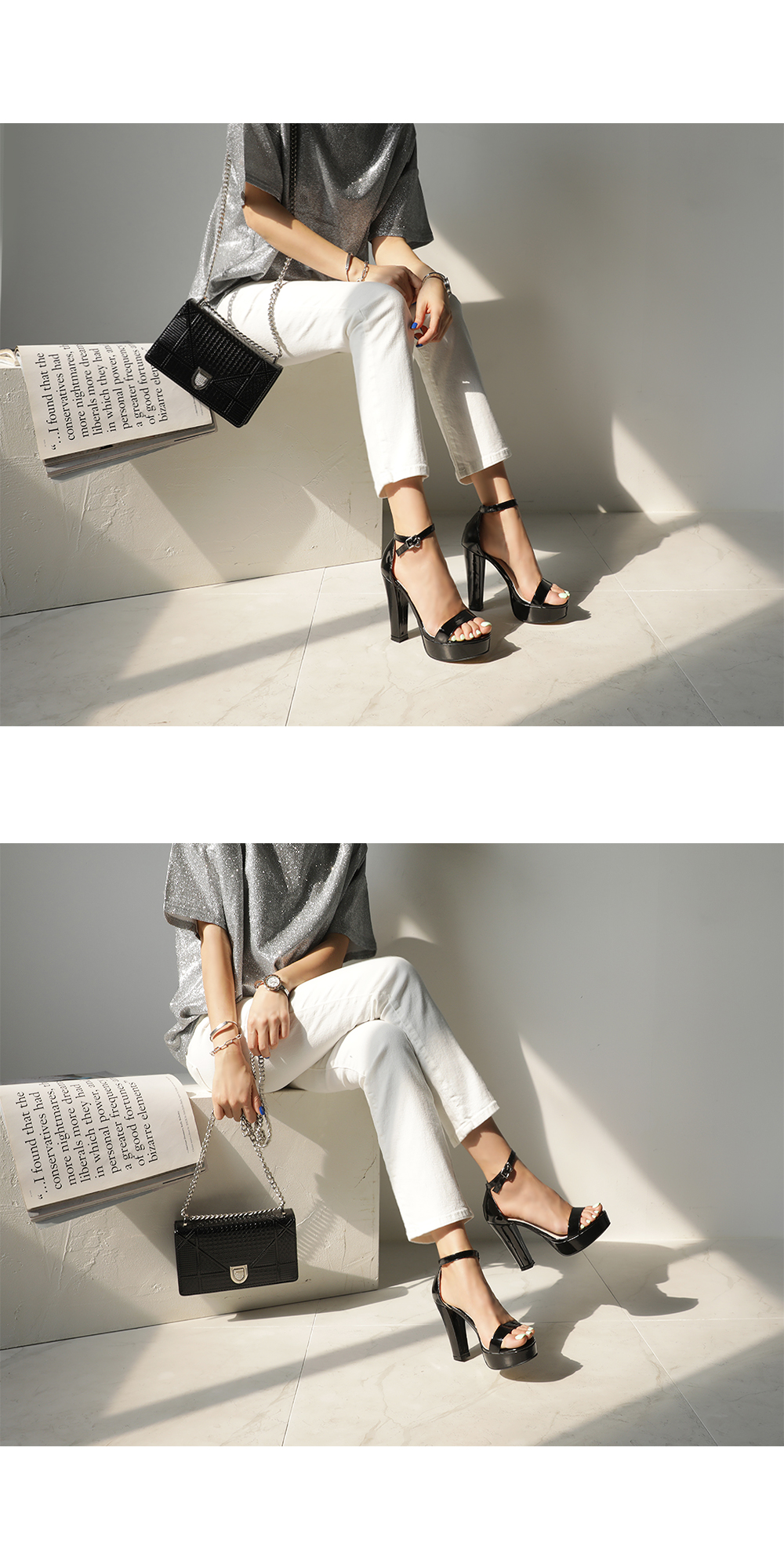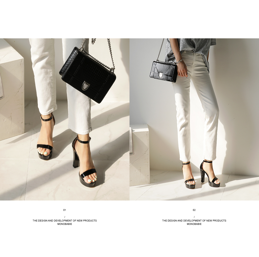 MATERIAL 퓨어한 베이직컬러로 구성된 에나멜 소재의 부담스럽지 않은 광택의 텍스쳐로 관리가 편안한 소재의 샌들입니다.