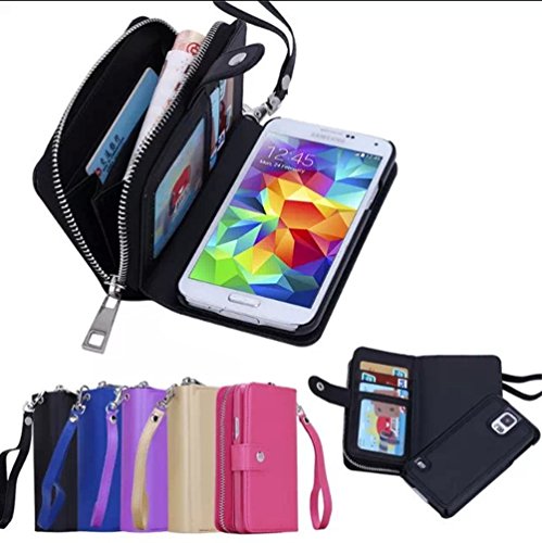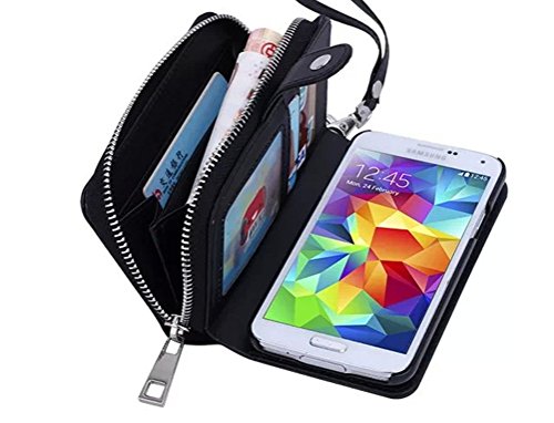 Dreams Mall 2 in 1 PU Leather Wallet Purse Case Protection for Samsung Galaxy S5 with Stand Flip Cover and Strap, Black