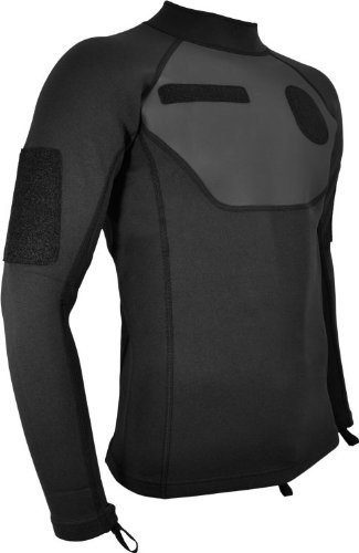 -. Brand : HAZARD 4 -. Feature : Velcro panels on arms for modular patches; Velcro panels on chest for name tape & larger patches. / Stealthy, unobtrusive Hazard 4 logo for uniform use; Greatly reduces chafing from equipment/environment. / Front hem loop (tie into swim trunk string to prevent rising); Elastic loop at the thumbs to keep the sleeves from rising up. / Total blind-stitching for flat seams and no chafing; Ribs + inner-arms super-stretch neoprene for comfort. / Sizes: S/M/L/XL/2XL; Main Material: 2mm rubbery-neoprene chest, 1.5mm neoprene abdomen/back/arms. -. Label : Civilian Lab LLC -. Manufacturer : Civilian Lab LLC -. ProductGroup : Sports -. ProductTypeName : OUTDOOR_RECREATION_PRODUCT -. Publisher : Civilian Lab LLC -. Studio : Civilian Lab LLC -. Title : Skin Diver(TM) ID Neoprene Shirt by Hazard 4(R)