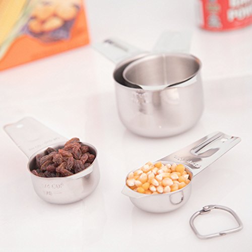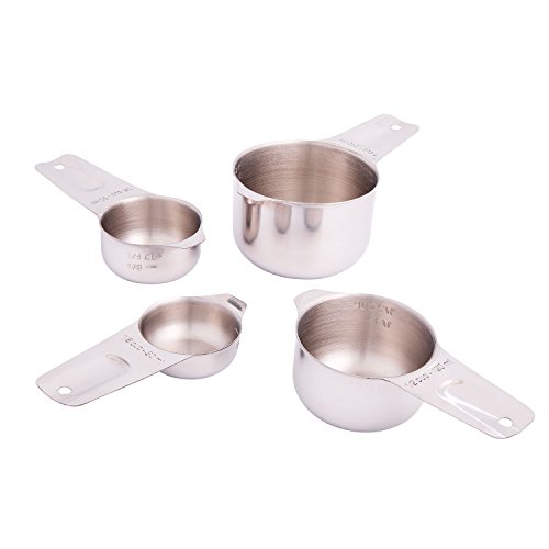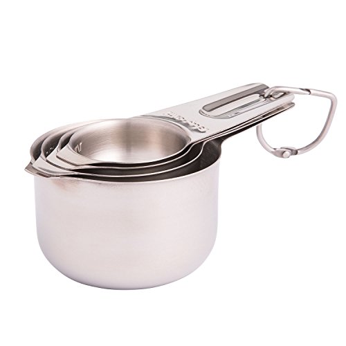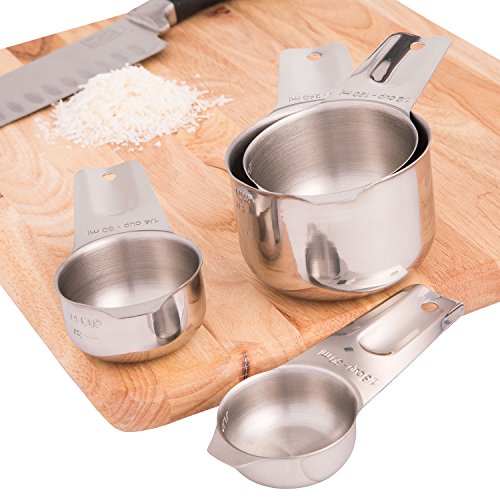 SilverOnyx Measuring Cups Stainless Steel - Premium Heavy Duty - 4 Piece Stackable Measuring Spoons for Dry & Liquid Ingredients Perfect for Cooking, in 1, 1/2, 1/4, 1/8 cup to ml - Set of 4