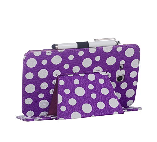 Tab E 7.0 Lite case, i-UniK Samsung Galaxy Tab E 7.0" LITE 8GB tablet (SM-T113 / 2016 Model) Slim Folio Standing Cover Case [Bonus Stylus] (Purple Polka Dot)