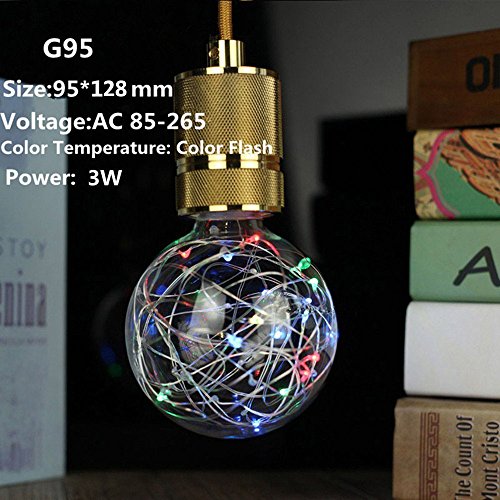 O'lemon G95 LED Bulb, E27 Base 3W 85V-265V Vintage Edison Filament Copper Wire Starry Decorative Lamp Bulb for Christmas Holiday Wedding Party Home Cafes Bars Lighting (Multicolor)