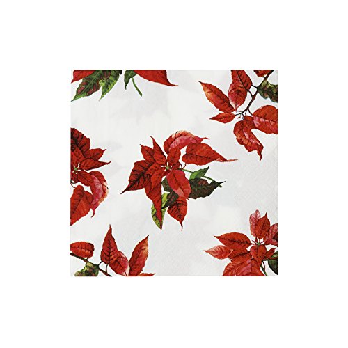 Talking Tables Botanical Poinsettia Design 3 Ply Napkin 13" for Christmas Parties and Dinners, Red and White (20 Pack)