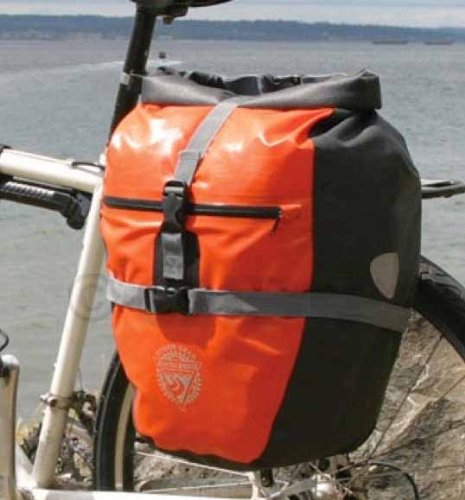 Studio : Seattle Sports Publisher : Seattle Sports Binding : Misc. Product Description A large main compartment, zippered exterior dry pocket and radio frequency-welded construction combine to make this a great pannier bag. The Rain Rider?s symmetric design allows it to be used on either side on the front or back rack. Tough yet lightweight PVC-Free urethane-coated nylon offers excellent protection, while side and top compression straps keep your load snug. Sold in singles (one side). 0