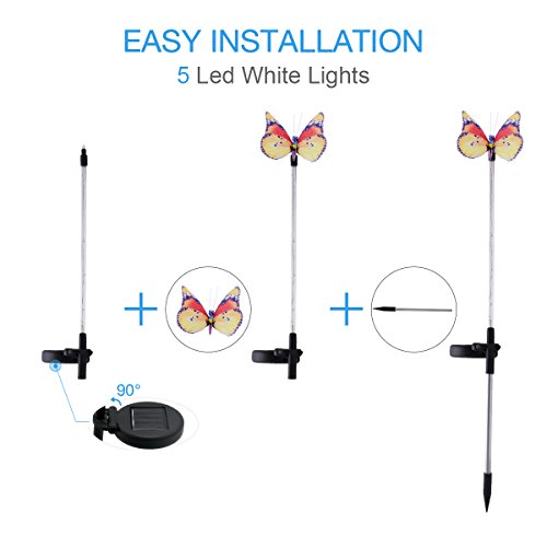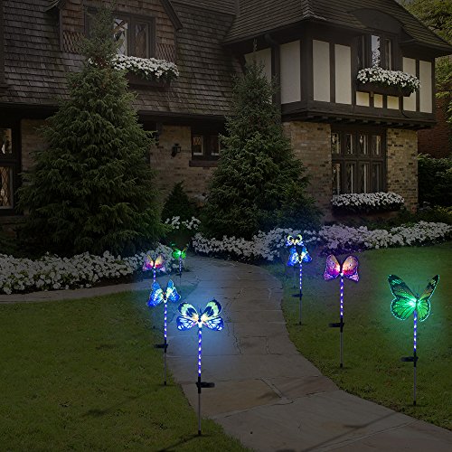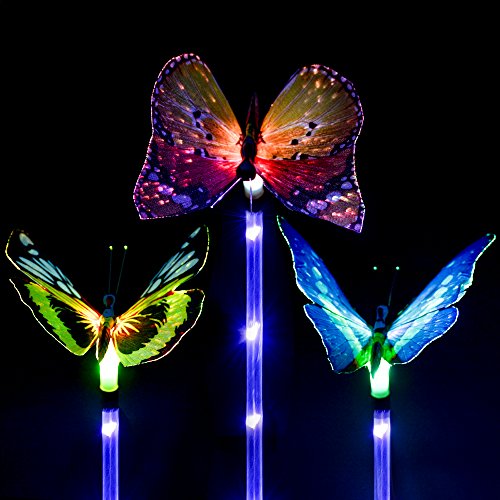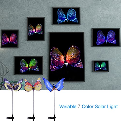 - Variable Color Solar Light:3 Solar Powered LED lights with a Butterfly, shaped stake light with 7 color-changing LED,Solar panel converts the sunshine into electricity during the day, and it lights up automatically at night