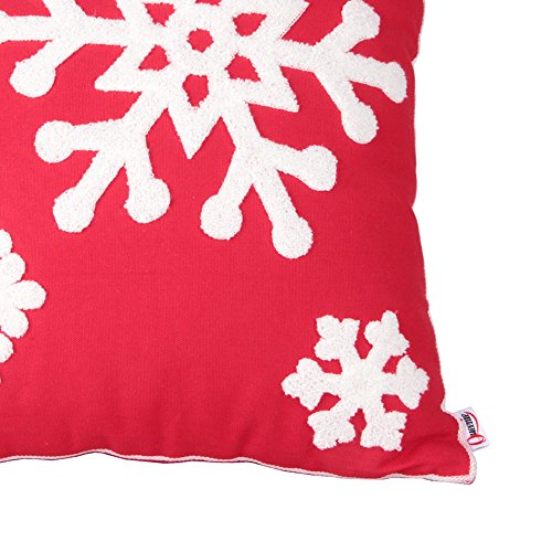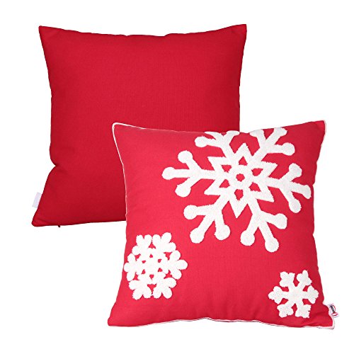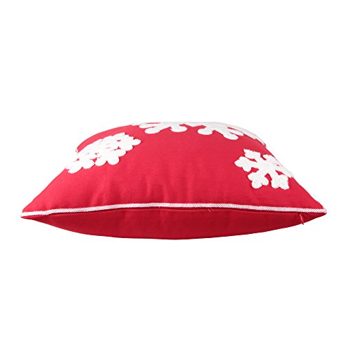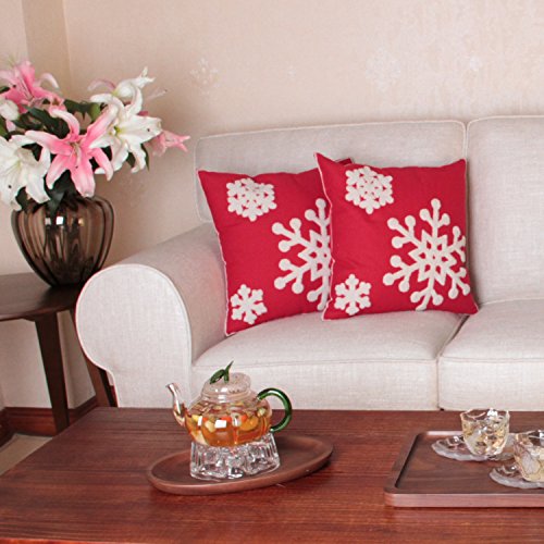Queenie® - 2 Pcs Christmas Series Embroidered Cotton Linen Decorative Pillowcase Cushion Cover for Sofa Throw Pillow Case (2, Snow Flakes Red)