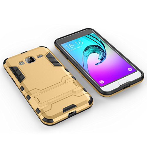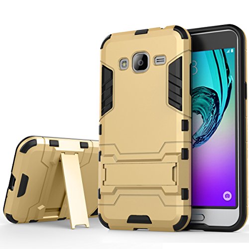 J3 case, Galaxy Express Prime Case, Pasonomi® [Outdoor] [Kickstand Feature] Hybrid Dual Layer Armor Defender Protective Case for Samsung Galaxy J3 / Express Prime / Amp Prime, Golden