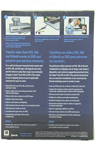 Capture from most analog camcorders, VCRs or even DVD players Add transitions between videos, trim unwanted content Capture video at full DVD-quality resolution Brand : Roxio Item model num : 251000CA MPN(PartNumber) : 251000CA EAN : 0687967132779