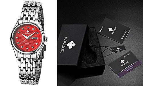 -. Title : WWOOR New Women Watches Quartz watch women Dress Ladies Watch Classic Retro Stainless Straps redWR0015
