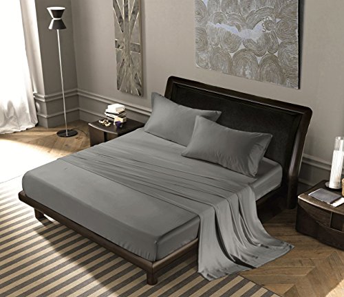 Luxury Quality 100% Woven Tencel Lyocell 4-Piece Bed Sheet Set, 300 Thread Count Sheets, Eco-friendly, Refreshing & Silky Soft Natural Fiber, Hypoallergenic, Mist & Odors Resistant - King Size Grey