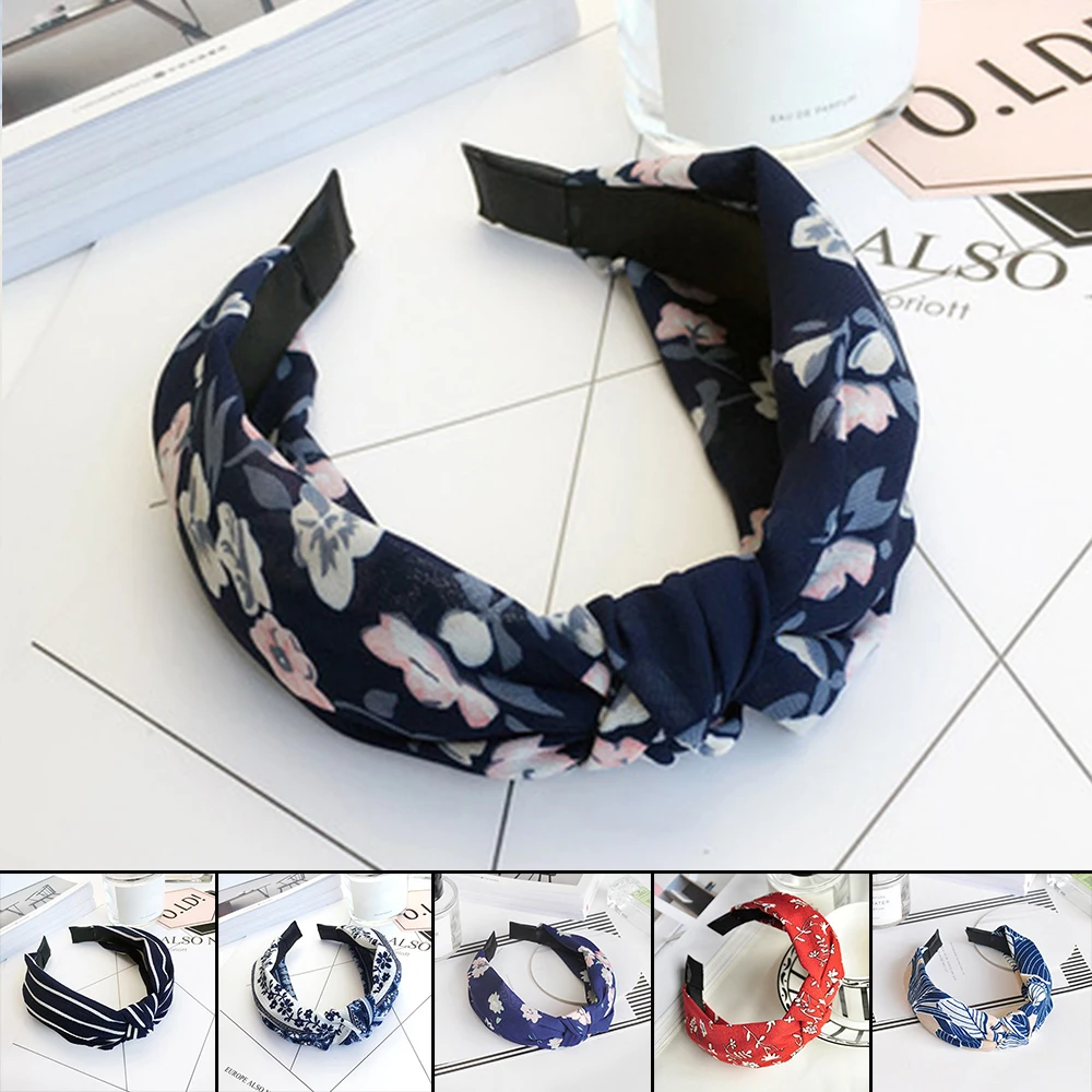 Women Hair Ornament Turban:2018 Spring Wide Knotted Headband