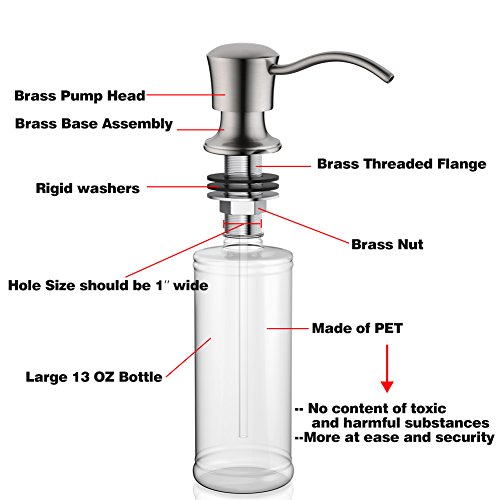 NOTE:Our Product Are Re-Designed, Other Sell Are Fake,Please confirm our brand EMBATHER before buyingTOP QUALITY PUMP-- Liquid soap dispenser is made out of brass to stand the test of time. Strong, acid-resistance, corrosion-resistance durable and multi-layer finishing process, stunning looks.