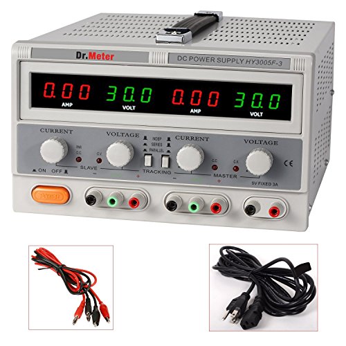 Dr.meter HY3005F-3 Variable Triple Linear DC Power Supply,30V 5A with Alligator Cable and Power Cord