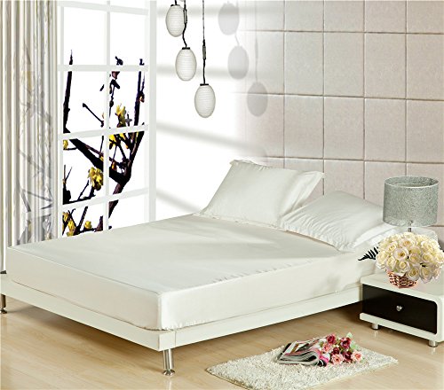 -. Title : Zhiyuan Solid Color Silky Satin Bedding Fitted Sheet 2 Pillowcases Set