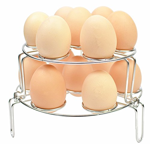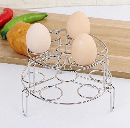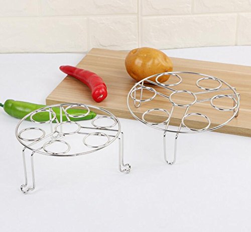 HIGH QUALITY MATERIAL - Food grade stainless steel steamer rack for instant pot, pressure cooker,Holds eggs well and can be used for PIP. ENJOY POT IN POT RECIPES- Not only an egg cooker rack, could also use to raise plate, pan or bowls off, convenient to cook various foods in a same pressure cooker, great for steaming fish, tamale, crab and veggies MUL FUNCTION-Besides steaming egg,it is convenient to cook other things, such as fish, potatoes, crab, veggies, dumplings, ect. they can use as steam rack, egg steam rack, cooling rack, pot stand rack and so on, otherwise, it can also be used to store bought eggs Easy to Clean-Extremely durable, portable, unbreakable, easy to clean, dishwasher safe,It is a fairly high quality steel and the joints are all spot welded 100% LIFETIME GUARANTEE - We stand behind the quality of our Egg Steamer Rack and are absolutely sure that you will love it too, but if for any reason you are not 100% satisfied, Please contact our sales support for refund. 0 |