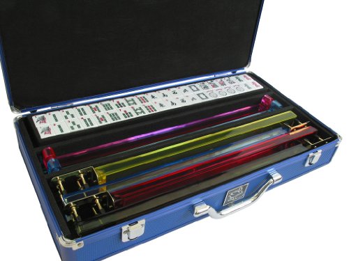 White Swan Mah Jongg sets are the highest quality American Mahjong sets available today. This luxurious product was designed by a team of Mah Jong players and advisors, and is crafted to the highest specifications. It is intended for the discerning Mahjongg player that wants to own the best! The design team incorporated noticeable upgrades from ordinary budget Mah Jongg sets. Most importantly, you will notice the absolutely perfect, beautifully engraved melamine tiles that are the White Swan trademark. Large and smooth, these tiles feature crisp and clear characters with clearly recognizable red, green, and black colors. Absolute perfection! And it gets even better. You will also notice that these White Swan American Mah Jongg sets come with gorgeous color co-ordinated pusher arms, that are carefully stowed in their own compartment after game play. How nice is that? White Swan Mah Jongg sets come in an array of beautiful, high quality aluminum cases that feature reinforced ergonomic handles, extra strong latches and hinges, as well as beautifully accented corner protectors. Open the case and discover numerous other upgrades, such as the padded inside lid, perfect for keeping your tiles and other components in place during transport. The tile trays are strong, precisely sized and encased in non-woven fabric, ensuring that your tiles remain clean and organized at all times. Your brilliantly colored tile racks are machined perfectly and without any blemish. If you want to become the envy of your Mah Jongg group, go ahead and treat yourself to a White Swan American Mah Jongg set. Compliments are guaranteed! Additional Information: Closed Case Length: 20" Width: 11" Height: 4"; 166 Melamine White/Blue Tiles: Length: 1 3/16" Width: 7/8" Thick: 1/2"; 4 Mah Jong Racks: Length: 16" Width: 2 1/8" Height: 1"; 4 Acrylic Mah Jong Pushers: Length: 18"; 2 Spare Jokers, 4 Blank Tiles, Bettor, Rule Book, 100 Chips 0 |