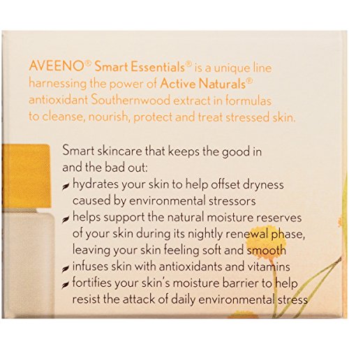 -. Binding : Health and Beauty -. Brand : Aveeno -. Feature : 1.7 Ounce / With Vitamins A, C and E / With Active Natural Southernwood / Hypoallergenic / Noncomedogenic -. Label : Johnson & Johnson Consumer Inc. -. Manufacturer : Johnson & Johnson Consumer Inc. -. MPN : B01BJL0MXS -. NumberOfItems : 3 -. PackageQuantity : 1 -. PartNumber : B01BJL0MXS -. ProductGroup : Beauty -. ProductTypeName : BEAUTY -. PublicationDate : 2016-02-09 -. Publisher : Johnson & Johnson Consumer Inc. -. ReleaseDate : 2016-02-06 -. Studio : Johnson & Johnson Consumer Inc. -. Title : Aveeno Smart Essentials Nighttime Moisture Infusion Facial Moisturizer, 1.7 Ounce (Pack of 3)