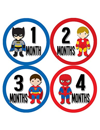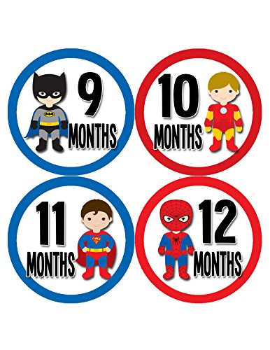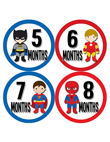 Months in Motion 808 Monthly Baby Stickers Superhero Baby Boy Month 1-12 Milestone Age Sticker Photo Prop