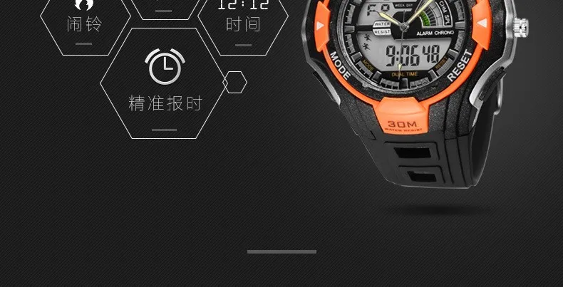 characteristics:Dual Display,Silicone,Waterproof,Repeater,Men Hour,Clock,Gift