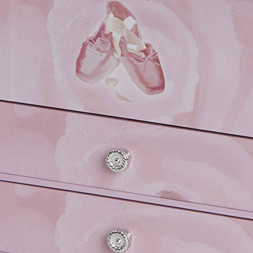 The Mele & Co. Casey girl's musical ballerina jewelry box offers timeless appeal and sweet sentiment. With ballerina and ballet slipper design, two drawers, and a twirling ballerina, this jewelry chest will earn accolades from your own tiny Dancer.Feature