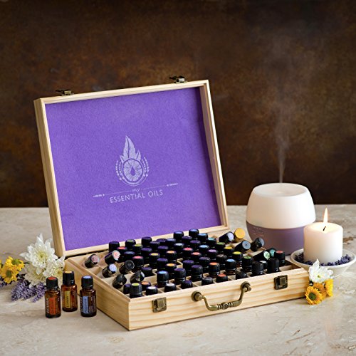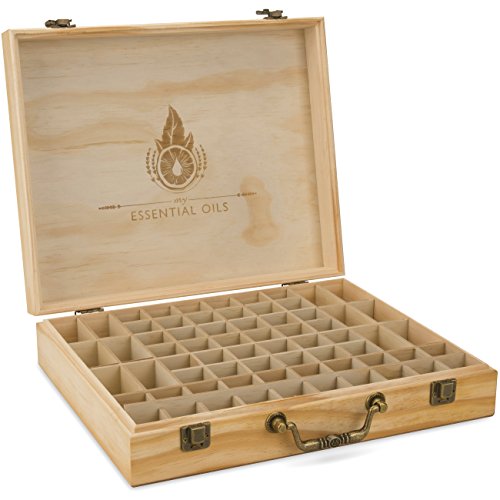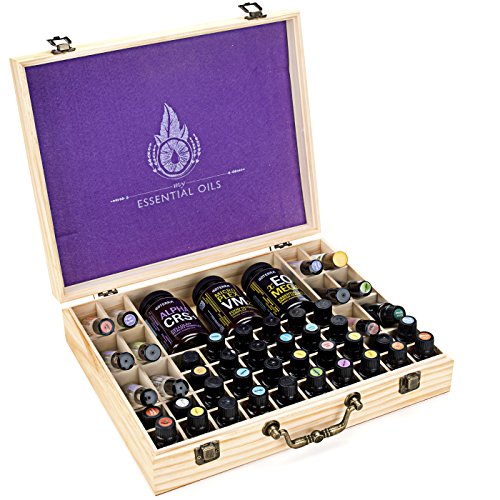 Essential Oil Wooden Box - Storage Case With Handle. Holds 68 Bottles & Roller Balls. Natural Plant Based Wax Finish. Large Organizer Best For Keeping Your...