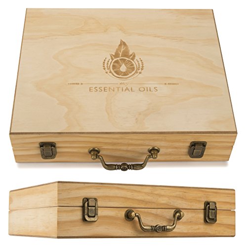 EXCELLENT CRAFTMANSHIP WITH ELEGANT DESIGN: Made from high quality pine wood with a beautiful etched design on the outside and inside of the lid. Beveled edging also gives this box an elegant look. Perfect for displaying your fine collection of oils.