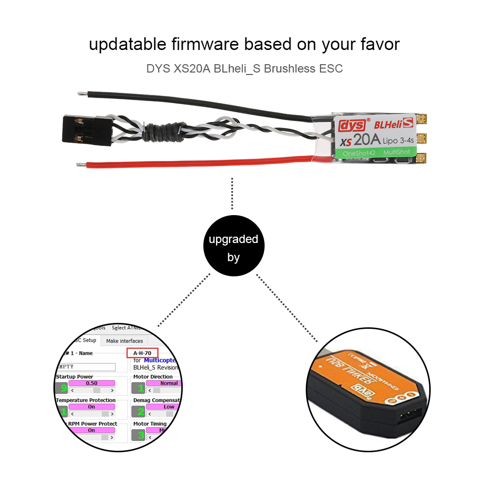 Supports 1-2ms signal, Oneshot125, Oneshot42 and Multishot, faster communication protocol between the FC and ESC on your quadcopter