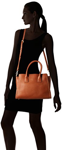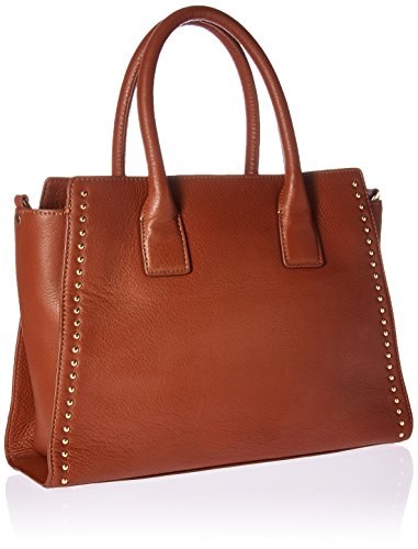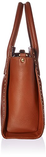 Rows of gold-tone studs and winged sides make a statement on this top-handle satchel