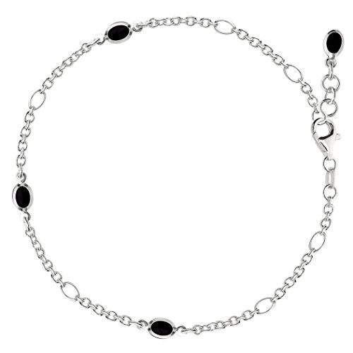 -. Title : Black Crystal Cable Chain Anklet In Sterling Silver