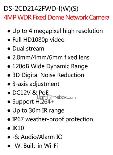 -. Title : Hikvision DS-2CD2142FWD-I 4MP WDR Dome Network Camera with DC12V & PoE(Waterproof Day Night Motion Detection PoE)30m IR