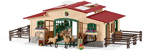 -. Binding : Toy -. Brand : Schleich -. EAN : 4055744005701 -. Feature : Hand painted / Highly detailed / Made of high quality plastic -. IsAdultProduct : 0 -. Label : Schleich North America -. Manufacturer : Schleich North America -. Model : 42195 -. MPN : 42195 -. PackageQuantity : 1 -. PartNumber : 42195 -. ProductGroup : Toy -. ProductTypeName : TOYS_AND_GAMES -. Publisher : Schleich North America -. ReleaseDate : 2016-07-11 -. Size : 22.4 x 15 x 5.5" -. Studio : Schleich North America -. Title : Schleich North America Stable Toy with Horses & Accessories, 22.4 x 15 x 5.5" -. Warranty : No Warranty