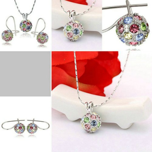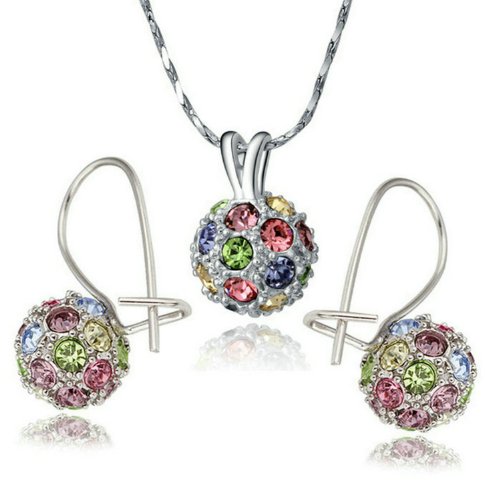 -. Binding : Jewelry -. Brand : Yoursfs -. Department : womens -. Feature : MATERIAL: Three layers of 18k white gold plated and zircon. / APPeEARANCE:Round ball pendant necklace/earring Jewelry Set with colorful Austrian crystals shine gracefully and beautifully. / SIZE:The necklace chain is 15.7'' long. The earring size is 0.9''*0.7''. / PICTURE:The pictures were taken according to the real product. / SERVICE:Delivery time is about 2-7 days by Amazon fulfillment Center. -. Label : Italina -. Manufacturer : Italina -. Model : S007W2 -. MPN : S007W2 -. PartNumber : S007W2 -. ProductGroup : Jewelry -. ProductTypeName : FASHIONOTHER -. Publisher : Italina -. Studio : Italina -. Title : Yoursfs Colorful Crystal Lucky Ball Necklace and Earrings Set 18k Gold Plated