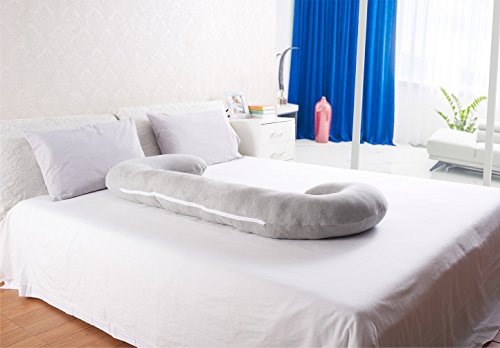 -. Feature : ERGONOMICAL DESIGN: The wrap-around C-shaped body pillow is ergonomically designed to fit to the natural contours of the body to relieve sleeping pains. Making your breathing better and reduce beartburn or other symptoms, No more back pain when you make a turn, Tucking it between your knee, using to elevate your head and align your hips to help relive strain on joints / COMPREHENSIVE FUNCTION: Customers have used this maternity pillow effectively for pregnancy support, nursing and for drug free pain relief and comfort (whilst sleeping) for people with fibromyalgia, sciatica, gastric reflux, congestion, carpal tunnel syndrome, eliminate tossing and turning, ME etc. As well as helps support supports stomach, back, head, neck, shoulders, hips and legs; / DELUXE PREGNANCY PILLOW: 58 inch body pillow fits any kinds of your bed and easy handle taking around for home use or traveling as a perfect multi-functional support giver whatever reading, watching TV or sleeping. 360° Total Body Support for a painless and sound sleep; / SUPER SOFT MATERIAL: Inside cover: Zippered jersey pillow cover is 100-percent hypoallergenic, contains zero phthalates/latex/lead and BPA-free; pregnancy body pillow filling: polyester, which offer long-lasting resilience and durability; / CUSTOMER FOCUSED: Meiz provides 30-day refund or exchange GUARANTEE if you don't like it. Our goal is for you to be completely satisfied.
