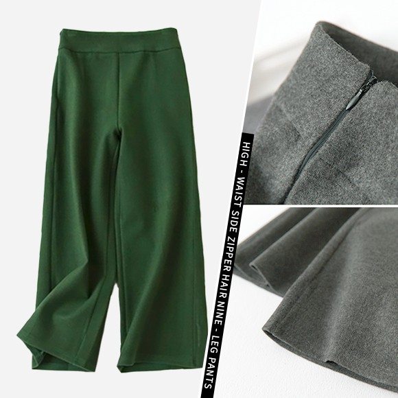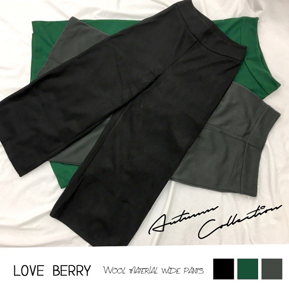 ウール風の素材感がお洒落なレディースワイドパンツです。